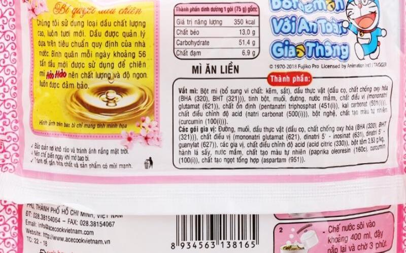 Theo thông tin từ nhà sản xuất, một gói mì Hảo Hảo tôm chua cay 75g có chứa: