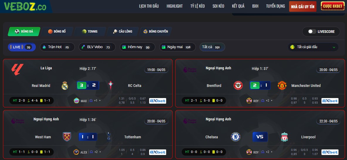 Điều đặc biệt là dù anh em xem bằng điện thoại hay máy tính, cả 4G hay wifi đều có thể load mượt mà, không cần cài thêm ứng dụng rườm rà. Chỉ cần vào website Vebo Live là đã có thể “bắt sóng” mọi trận cầu hấp dẫn.